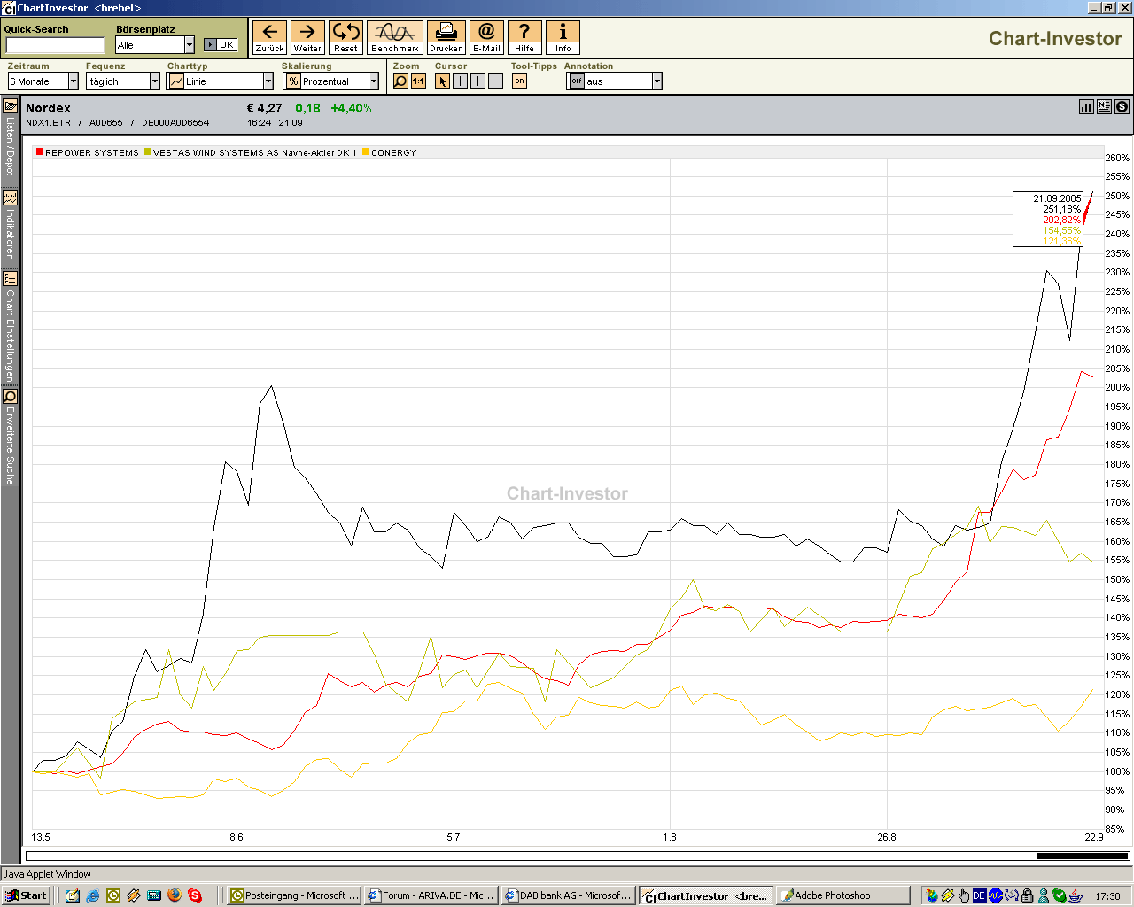 bei repower könnte ich jetzt mal darlegen, wie die wachstumsaussichten aus meiner sicht sein könnten und dies in bezug auf die kernmärkten und teilweise mit interessanten projekten ein wenig hinterlegn - das resultat ist eine sukzessive auslastung der kapazität von 350-400 anlagen und ev. einer leistung von 500 anlagen, wenn der produktionsstandort in portugal hinzukommt - da ist also phantasie drin - wenn du es in diesem fall ausführlicher magst, dann kann ich damit gerne mal anfangen (denn auch das gehört zum versuch einen laden fundamental zu hinterfragen)