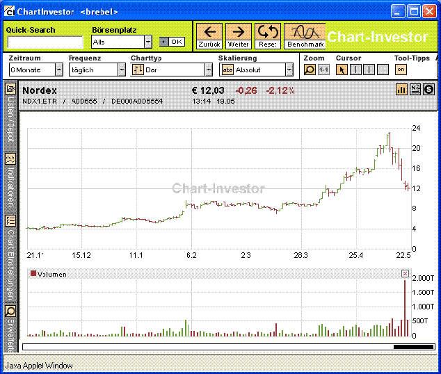 letztlich hat repower immer noch einen 1.5x so grossen auftragsbestand wie nordex, hat fast die gleiche ebit- und umsatzprognose, nach den ke mehr ek - und notiert trotzdem bei einem kurs der einem nordex-äquivalent von ca. 6 euro entspricht.