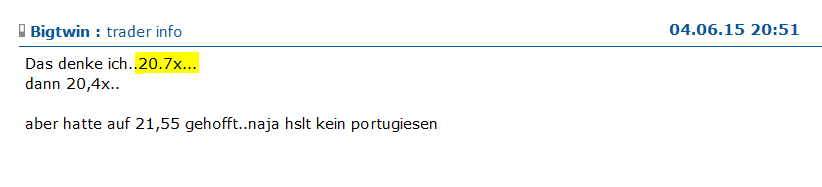 kleiner EK bei 21.1... irgendwie ist der Gesamtmarkt zu unsicher, kann vielleicht tiefer gehen.