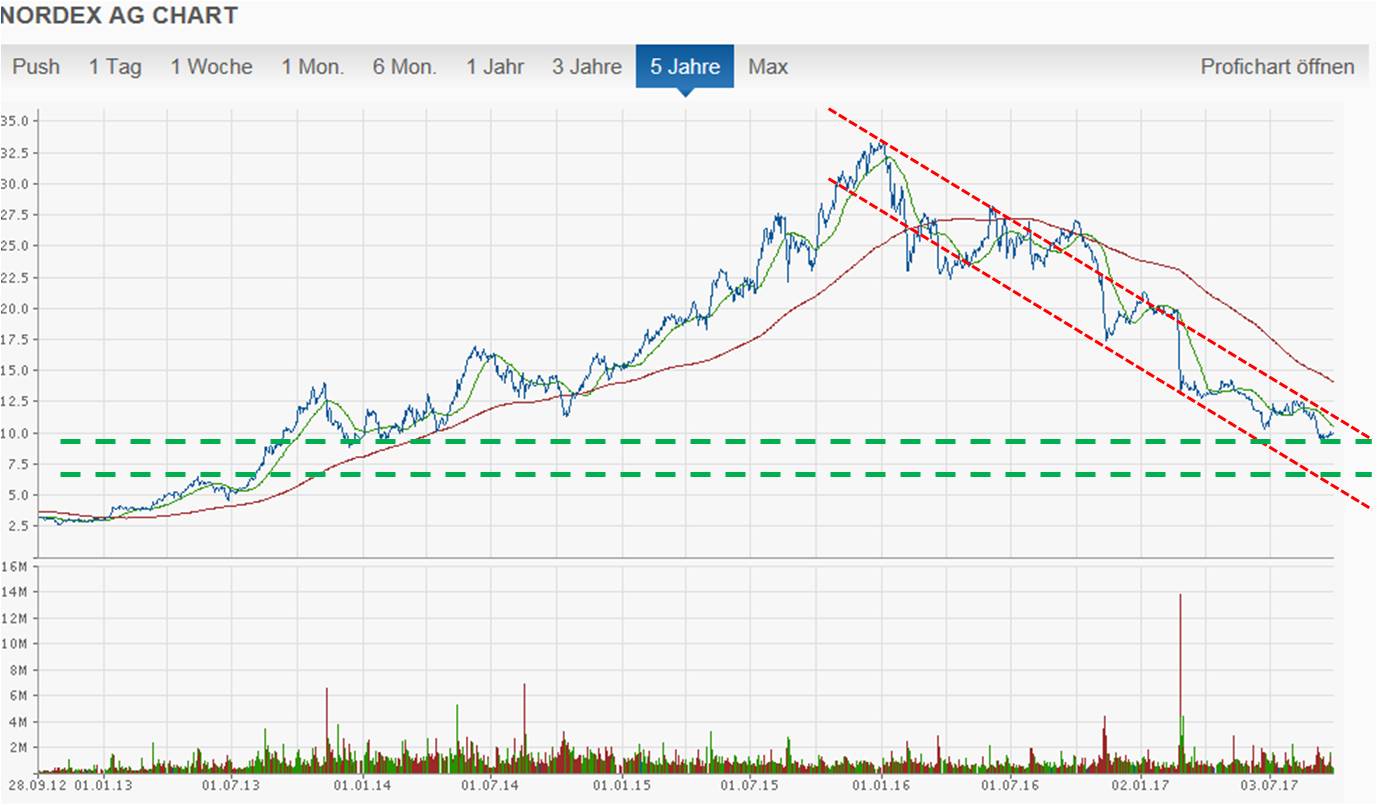 mit jedem schlechten (nachrichtenlosen) Tag mit dem der Kurs nicht signifikant nachgibt (und das tut er nicht, sondern bewegt sich in einer Range) steigt die Wahrscheinichkeit dass ein Ereignis kommt, das zu einem Sprung führt. Die Tatsache dass der Kurs nicht wirklich signifikant fällt obwohl dauernd auf die Aktie eingedroschen wird spricht Bände. Wenn dieses bestimmende Ereignis kommt, dann wird der Kurs explodieren (es kann natürlich auch ausbleiben, dann geht es wohl mit der Zeit weiter LANGSAM nach Süden). Die Erfahrung lehrt aber, dass ein solches Ereignis kommen wird. Es ist wie beim Würfeln: Mit jedem Wurf in einer Sequenz in der nicht die 6 fällt steigt die Wahrscheinichkeit dass die 6 kommt (Gleichverteilung angenommen), und wenn sie dann kommt, dann häufig mehrmals hintereinander. Auf Nordex übertragen heisst das, dass wir im Moment dauernd etwas zwischen 1 - 3 sehen und dadurch die Wahrscheinlichkeit für bessere Werte steigt. DIE ZEIT SPIELT HIER ALSO GEGEN DIE SHORTIES.