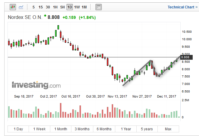 In den USA ist so gut wie alles nun doch gut gelaufen für Wind, so dass das US Geschäft keinen Schaden nehmen wird. Morgen soll die US Steuerreform verabschiedet werden und dann sollten auch die lang ersehnten US Aufträge so langsam eintrudeln. Vor allem bei Acciona-Mühlen, denn da ist seit Monaten bezüglich Auftragseingang rein gar nichts passiert. Die deutlich erhöhten Fertigungskapazitäten in Indien wie auch die nagelneue Rotorblattproduktion warten wohl sehnlichst auf die US Aufträge. Wobei man aber schon davon ausgehen, dass inoffiziell der Großteils der US Aufträge bekannt ist.