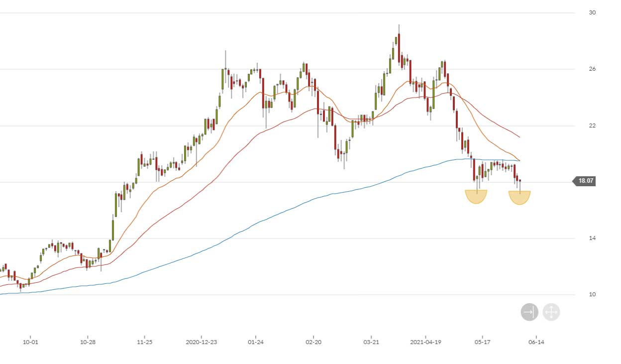 Die Chart kann man so oder so interpretieren, ist meine Erfahrung. Wenn der Kurs noch weiter runtergeht, dann werde ich eventuell bei ca. 15€ und dann bei 12€ nochmals verbilligen. Wenn es noch weiter runtergeht, dann sind wir eh am Ar....