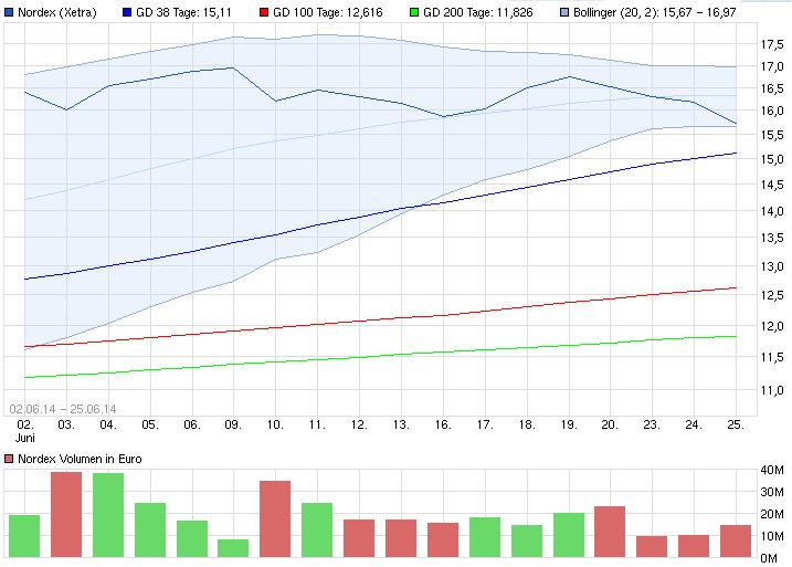 bei Nordex mit 15% (max.20%) Minus vom letzten Höchstkurs, also Tiefskurse von 14,45€ (max.13,60€).