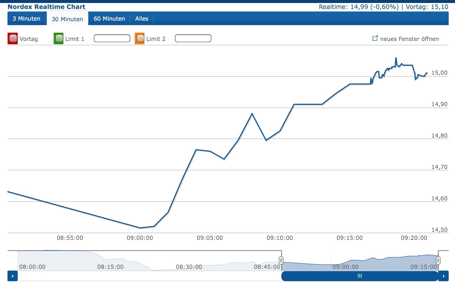 Hmmmm...... Tradegate dümpelt jetzt um 9.00 Uhr bei 14,70 rum...... mal schauen watt passiert wenn gleich der Herr Xetra seine Tür aufsperrt....