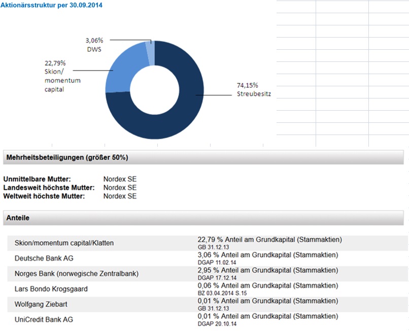 Irgendwie habe ich manchmal das Gefühl, dass einige Poster bei Nordex finanzielle Probleme sehen. Wir sind nicht mehr im Jahre 2011/2012, sondern wir schreiben mittlerweile 2015 und Nordex steht aktuell finanziell hervorragend da. Man braucht sich nur die Bilanz anschauen.