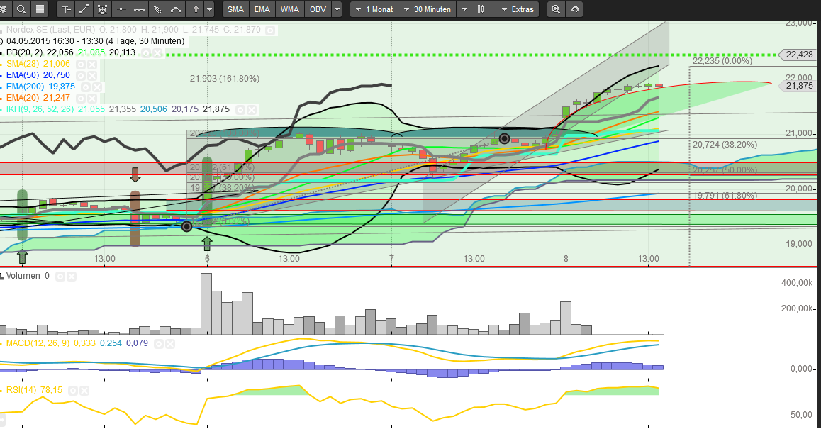 Naja, und wie es so ist mit Trendsegmenten. Da gibt es auch natürlich irgendwann die Übertreibung nach oben. Ich weiß noch genau als Nordex zum Kurs von über 30 eine KE machte, dass diese KE ohne Probleme durchgezogen werden konnte. Auch die DB griff damals nochmal kräftig zu (nachdem sie einiges ihres Bestandes einige Zeit vorher zu Kursen zwischen 10 und 15 Euro verkauft hatten).