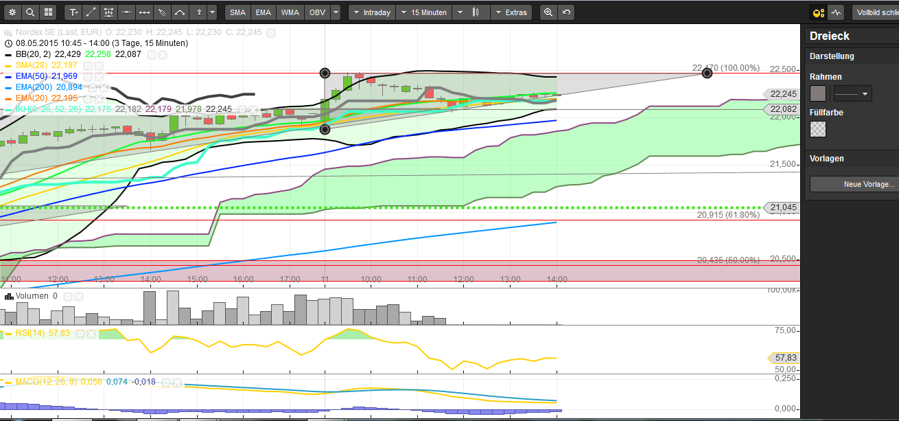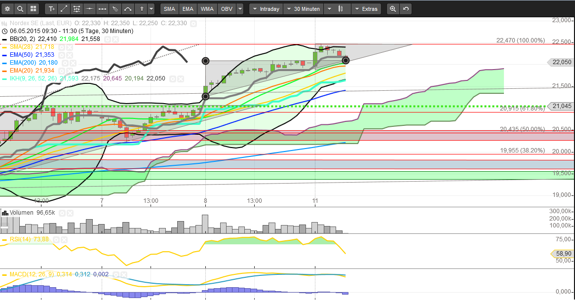 Das Problem was ich abseits der Zahlen sehe ist die hypernervöse deutsche Börse, die zum einem mit den Turbulenzen am Anleihemarkt kämpft und keiner weiß so richtig warum der Anleihemarkt auf Talfahrt ist (damit sind die Anleihenrenditen gestiegen und gerade die niedrigen Anleihenrenditen sind ja ein Argument für die hohe Aktienbewertungen) und zum anderen kommen die zwei großen US-Indizes einfach nicht über ihre wichtigen Widerstandmarken und das sorgt selbstredend für Verunsicherung. Der Dow Jones kämpft jetzt erst wieder einmal gegen die 18.103, die er verloren hat, und bevor der Dow Jones nicht über die 18.200 geht und zwar nachhaltig, so lange wird der DAX mit ganz großer Wahrscheinlichkeit in seinem Konsolidierungsmodus bleiben. Auch darf/sollte man nicht vergessen, dass Nordex in den letzten zwei Wochen super performt hat mit einem Plus von 18%, während der DAX sich in diesem Zeitraum trotz hoher Vola eine Performance von knapp 1% hingelegt hat.