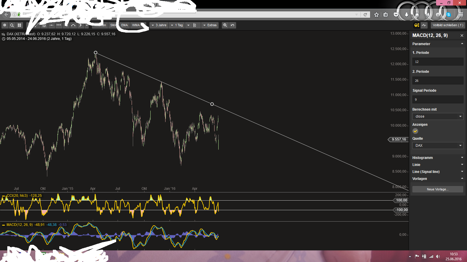 Bin aber bei dir mit dem S&P 500 bzw. dem Dow Jones, beide sind wirklich auf einem sehr hohen Niveau und beide sind auch noch hoch bewertet mit KGVs von um die 20. Ganz im Gegensatz zum DAX, denn dessen KGV-Bewertung liegt nach dem Freitagabsturz gerade mal noch bei 11 (niedrigste mit 9er KGVs Lufthansa und VW) und damit deutlich unter dem Durchschnitt der letzten 20 Jahren. Dazu gibt es beim DAX noch eine Dividendenrendtie von 3%. Von der Seite her besteht beim DAX normalerweise keine allzu große Gefahr nach unten, aber die Börse untertreibt bzw. übertreibt sehr gerne. Zumindest temporär. Mit der ganzen Brexit-Diskussion gibt es jetzt natürlich verdammt viele Unsicherheiten. Ich persönlich glaube nicht an einen Brexit, denn so wie es mittlerweile aussieht haben nun viele Briten begriffen was sie da am Donnerstag überhaupt angestellt haben mit Leave und von den Brexit-Politiker hört man nun schon seit 2 Tagen rein gar nichts mehr. Es könnte aber sicher auf die 8.800 beim DAX gehen, muss aber nicht, denn eines ist doch auch klar es gibt doch in dieser Niedrigzinsfase so gut wie keine Alternativen zu Aktien.