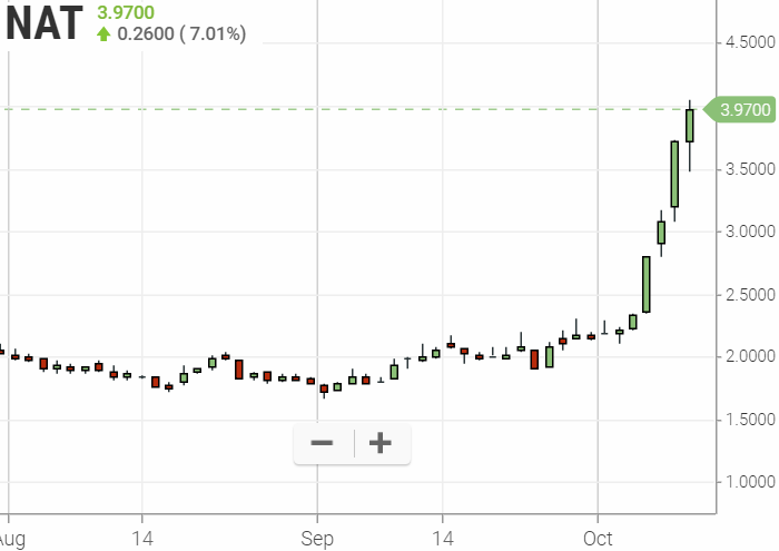 Während der US Handelszeiten ist der spread bei NAT in den USA jedenfalls viel niedriger.
