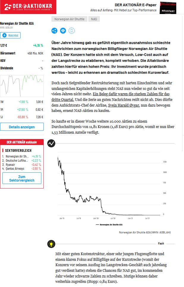 EInzig negativ - NAS wird kein Geld verdient haben trotz der Super Verkehrszahlen.