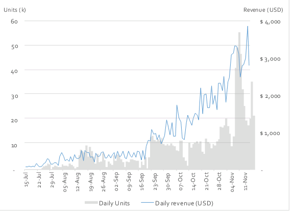 Downloads Two months after launch on android: 800,000