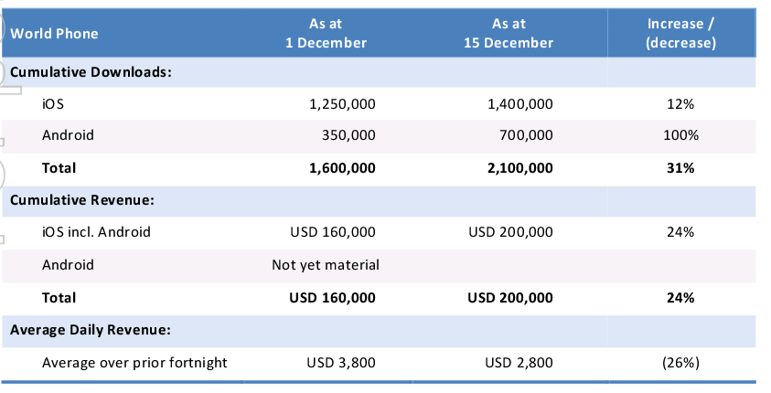 Auch wenn ein User aktuell nur mit 20€ bewertet wird, ist bei konstanten, täglichen Downloads von ca. 30000 ein Kurspotenzial von 0,32€ gegeben - bei hochgerechnet 13,5 MIO Usern in einem Jahr.