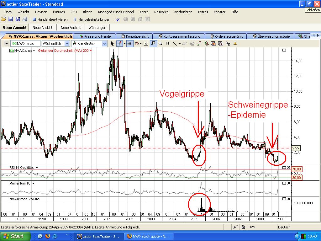 This was a huge boom for both companies today. Vical Inc. (NASDAQ: VICL) rose over 22% to $2.70, on over 8 million shares. Novavax, Inc. (NASDAQ: NVAX) shares closed up 31% at $3.28, on over 32 million shares. As far as how high that volume is, that is about 14-times average on Vical and nearly 8-times average volume on Novavax.