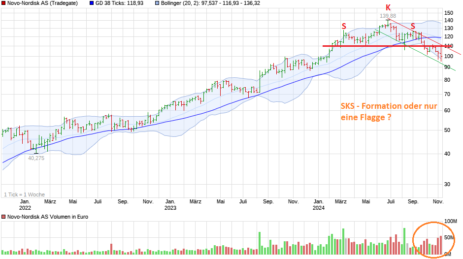 Zahlen auch einen Sippenhaft-Abschlag für NVO. Die Eli Lilly Zahlen waren tatsächlich schlechter als erwartet. Der Markt hat nun mit den "normal" ausgefallenen NVO Zahlen realisiert, dass NVO sich im Vergleich etwas besser geschlagen hat. Das könnte eine Erklärung sein. Die US Wahl wird's vermutlich nicht sein. Mit "America first" hat es NVO sicherlich etwas schwerer in den USA die kommenden Jahre.