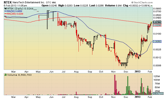 NanoTech Entertainment (PINKSHEETS: NTEK) trades on OTC Pink, the open marketplace for a wide spectrum of equity securities. Investors can find real-time quotes and market information at www.otcmarkets.com.