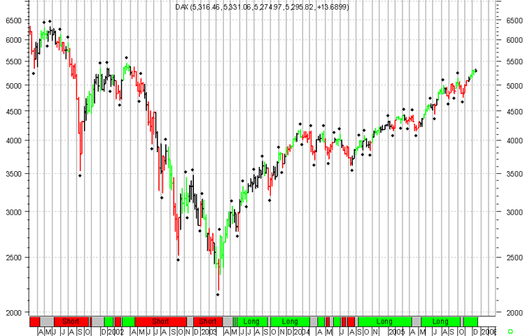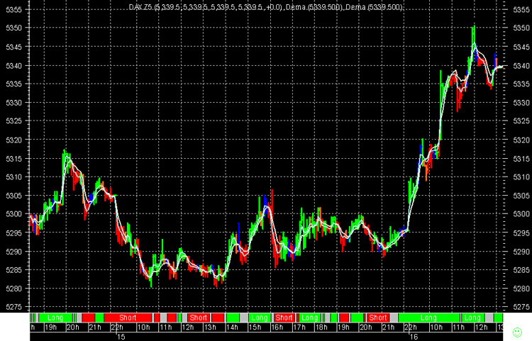 Long und Short-Entries sind genau ersichtlich aus der unteren Zeile ... funktioniert auf Tagesbasis für Futures ganz genauso ...