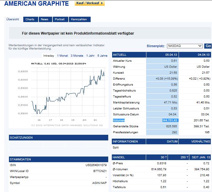 A1KBDQ, gehandelt an der Börse Berlin) ist gleich in doppelter Hinsicht ein potenzieller Nutznießer des bevorstehenden Graphene-Booms. American Graphite ist nämlich das einzige mir bekannte Unternehmen, was gleich an mehreren Stellen der Wertschöpfungskette im Graphene-Sektor aktiv ist.