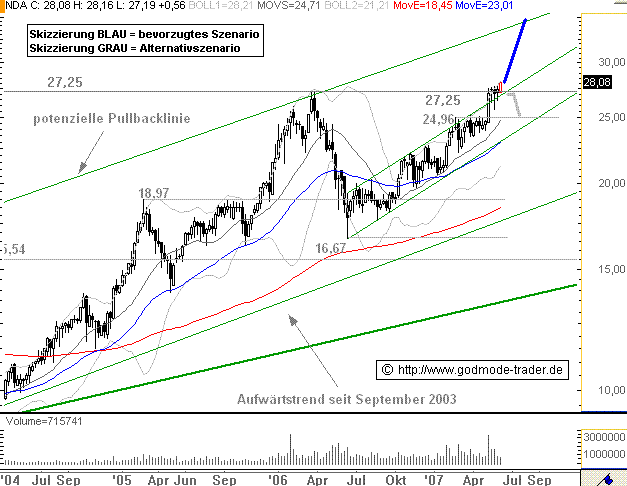 1 FUSSNOTE: Das Phase I-Verfahren bei der Europäischen Kommission kann bis zu 25 Arbeitstage in Anspruch nehmen (oder 35 Arbeitstage, falls Nachbesserungen angeboten werden oder ein Antrag auf Übergabe des Verfahrens an die Behörde eines Mitgliedsstaates vorliegt). Ein Phase II-Verfahren kann bis zu 125 weitere Arbeitstage in Anspruch nehmen (d.h. üblicherweise bis zu 90 Tage in Phase II, 105 Tage, falls Nachbesserungen nach einem bestimmten Zeitpunkt in Phase II angeboten werden, sowie weitere 20 Tage bei Einwilligung beider Parteien). DGAP 24.06.2007