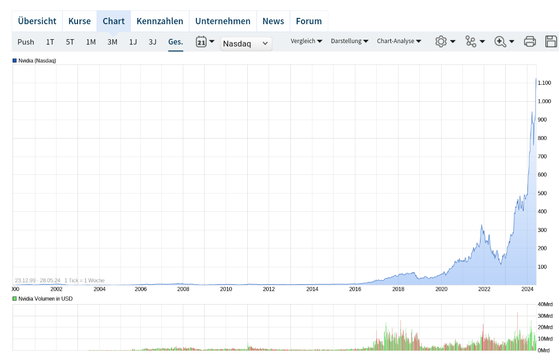 Ich gratuliere jedem der vor Jahren die Weitsicht und Glück hatte NVIDIA Aktien zu kaufen. Mir waren diese immer exorbitant zu teuer. Ich spreche davon als Grafikkarten absolute Mangelware waren in Folge irgendwelcher krypto Geschichten , die ich nicht verstanden habe.