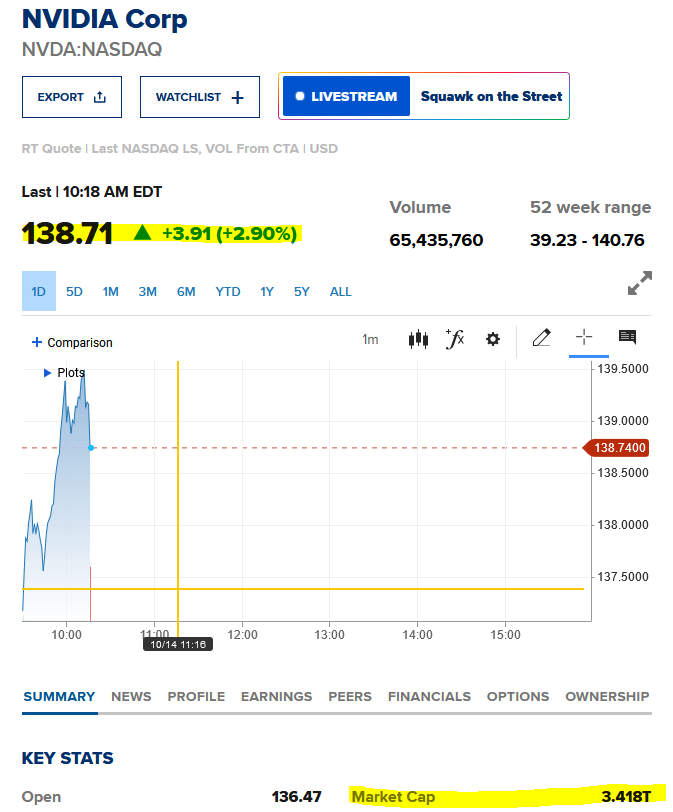 Schrumpfende Gewinne oder Stagnation wird Investitionen weiter zurückschrauben, ergo weniger Nachfrage, ergo rückläufige Preise auch bei KI-Chips. Das wird die erste ernsthafte Verkaufswelle bei Risk-Altien und hier im Besonderen Nvidia auslösen, denn die Bewertung im Vergleich zu anderen Bigtech-Aktien ist hanebüchen.