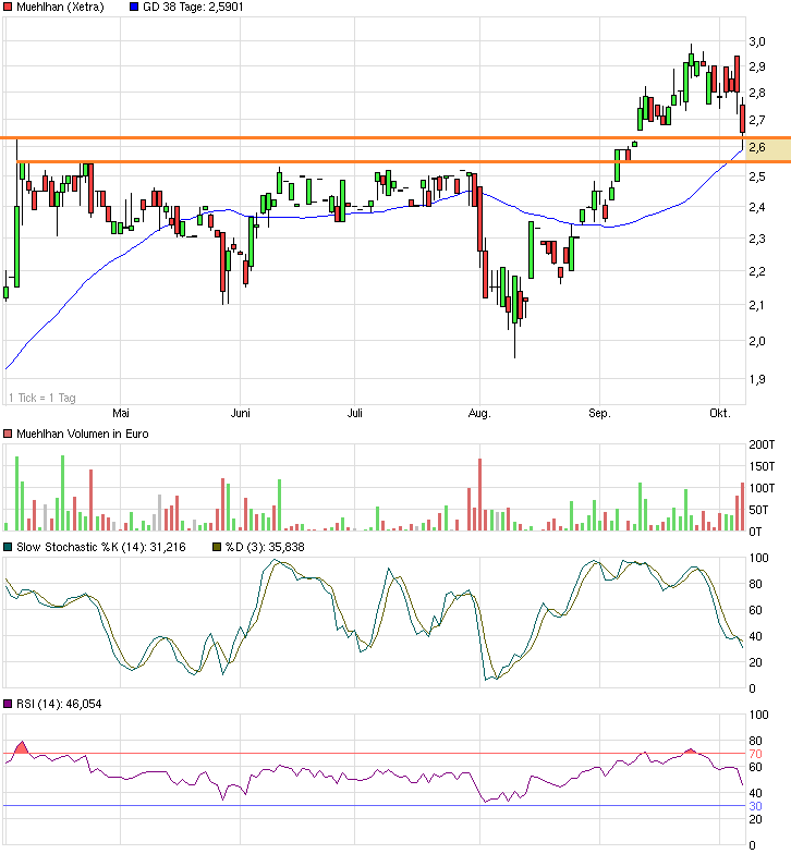 Mitteilung überhaupt rausbringt. Normalerweise hätte ja eine Präzisierung der Ergebnisprognosen im Rahmen der Quartalszahlmeldung im November völlig ausgereicht. Muehlhan scheint jetzt insgesamt deutlich souveräner am Kapitalmarkt aufzutreten und nach Stabilisierung des Geschäfts auch am Aktienkurs interessiert zu sein. Mir gefällt´s