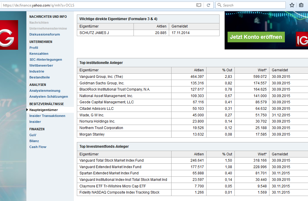 Bei yahoo gibt es eine Aufstellung über Beteiligungen an OCLS.
