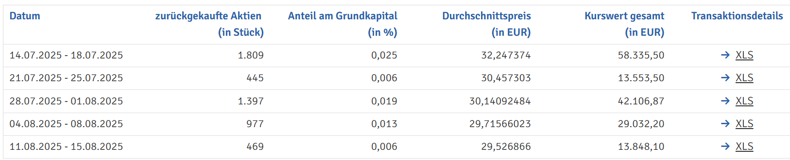 Dividende von 0,36 €/Aktie wurde jetzt, wie bereits im Vorjahr, aus dem steuerlichen Einlagekonto gezahlt.