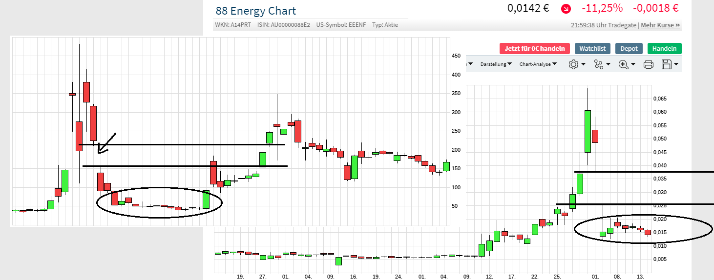 Aus der Erfahrung der letzten Jahre in 88 E und einigen Bohrungen bin ich mir sehr sicher, dass wir einige Wochen vor den Bohrungen wieder solche Kursbewegungen sehen, wie wir sie hier zuvor erlebt haben und ggf. höher, wenn das Labor aus den "Vor-Proben "von Merlin I, die ja nicht mal vom Bohrziel stammen, eine höhere Verlässlichkeit auf Öl bestätigt als man vor der Bohrung nur angenommen hatte.