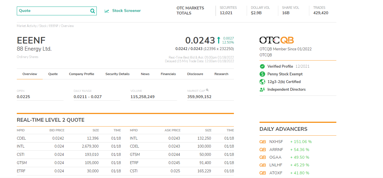 Egal,- jedenfalls,- und man kann es nicht oft genug sagen, haben wir in dieser Saison so positive Vorzeichen wie noch nie. Sei es mit den vorliegen Laborergebnissen, einem schon "vorgebohrtem" Loch, aus denen die Proben stammen und man diese Strecke schon hinter sich hat, die zusätzlichen Bohrlöcher ( Chancen ) und nicht zu vergessen, der deutlich gestiegene Bekanntheitsgrad unter Aktionären und die Euphorie der letzten Saison die allen noch im Kopf hängen sollte, als der Kurs noch bei ca. 0,006 gestartet ist bis zum angezeigten 52-Wochen-Hoch 0,069. Und,- der Handelsplatz jetzt neu auf der OTCQB (https://www.otcmarkets.com/stock/EEENF/overview ), was auch nochmal einen Drall geben sollte.