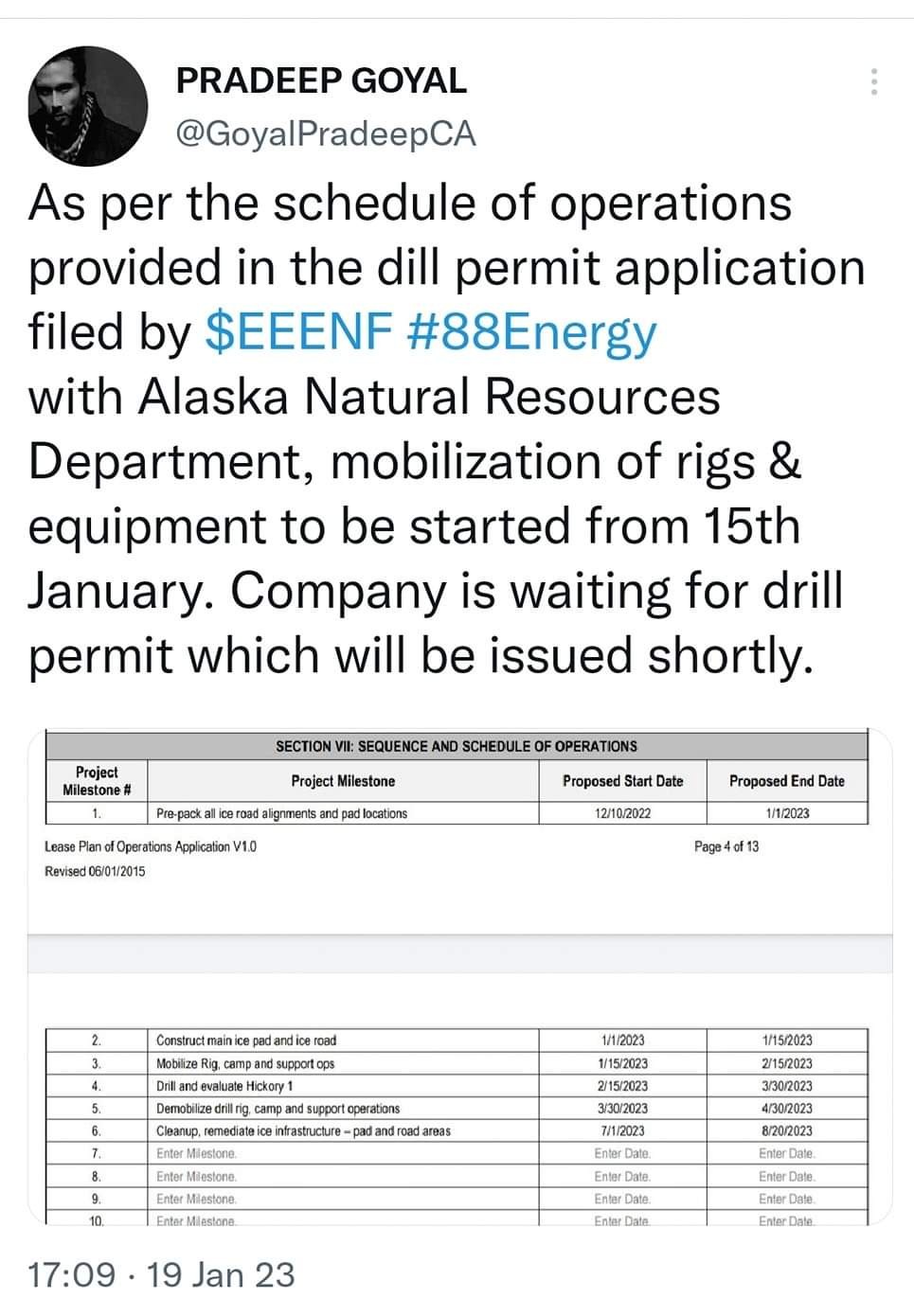 Weiterer wichtiger 88 Energy tweet
