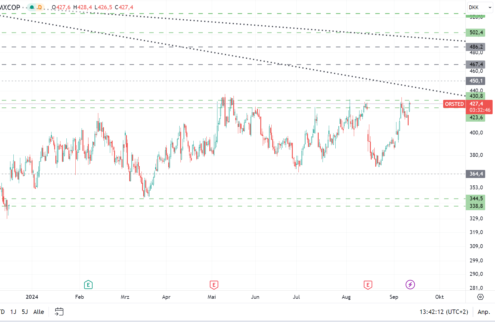 Für Orsted könnte das bedeuten, dass wir erst nach der Wahl etwas Konkretes sehen. Ich rechne jetzt noch mit einer weiteren Auf- und Abwärtswelle im Chart und dann sind wir auch schon in den elections.