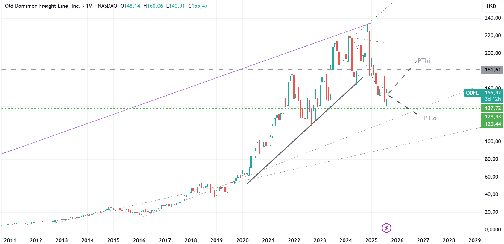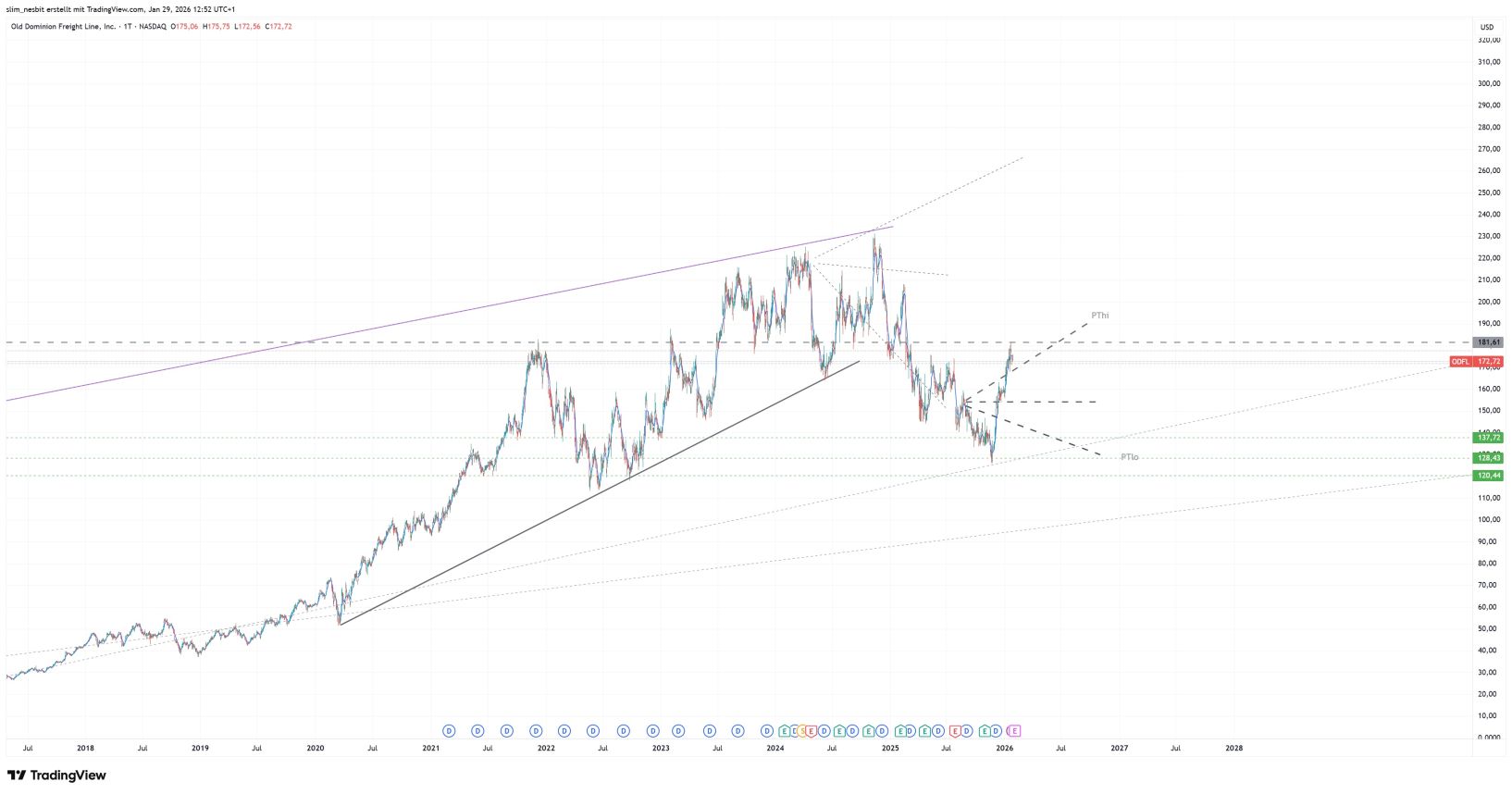 (MT Newswires) -- Old Dominion Freight Line (ODFL) meldete am späten Mittwoch, dass der Umsatz pro Tag im August im Vergleich zum Vorjahr um 5,2 % gesunken ist, was auf einen Rückgang von 6,1 % bei den weniger als Lkw-Tonnen pro Tag zurückzuführen ist.