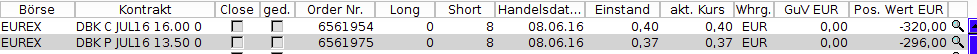 Start des Handelns wird voraussichtlich Ende dieser Woche bis Anfang nächster Woche stattfinden. Bis dahin erläutere ich die Theorie und meine Strategie.Regeln und Strategien beschreibe ich in den nächsten Postes. Alle Trades werden relativ zeitnah gepostet, so daß eine lückenlose Dokumentation gewährleistet ist. Natürlich werden auch die monatlichen Ergebnisse präsentiert. Laufzeit des Projekts ist der Verfall der Optionen DEC16. Es wird wahrscheinlich eine Option Verlängerung bis DEC17 geben.