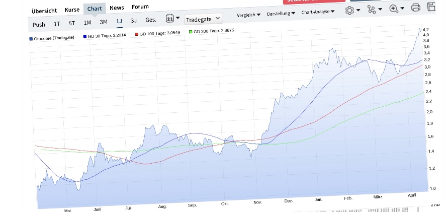 Erst wenn er dieses Niveau überspringt, ist das das bullische Signal. Die neuralgische Stelle für einen kräftigen Upmove liegt um 4,40€, dort müsste er recht flott hin, sonst baut er auf dem aktuellen Niveau die Dynamik ab.