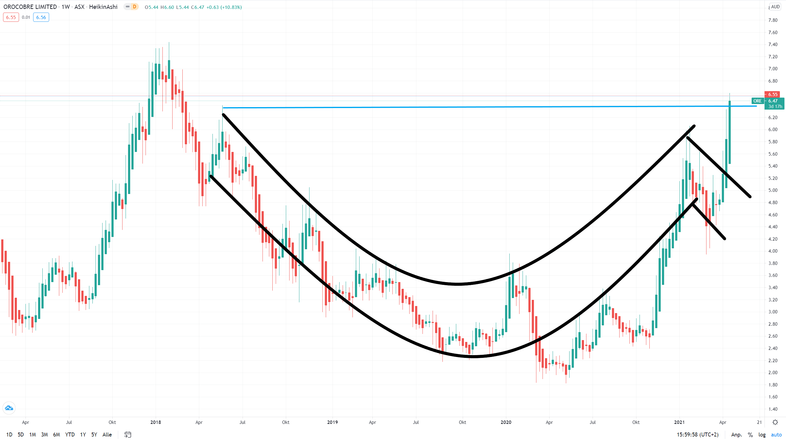 Bleibt er in den nächsten Tagen deutlich oberhalb des Henkels, wäre das ein Indiz dafür, dass er nur Luft holen will. Bei einem typischen Muster treibt dann der Kurs bis an den Tassenrand der größeren Tasse.