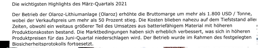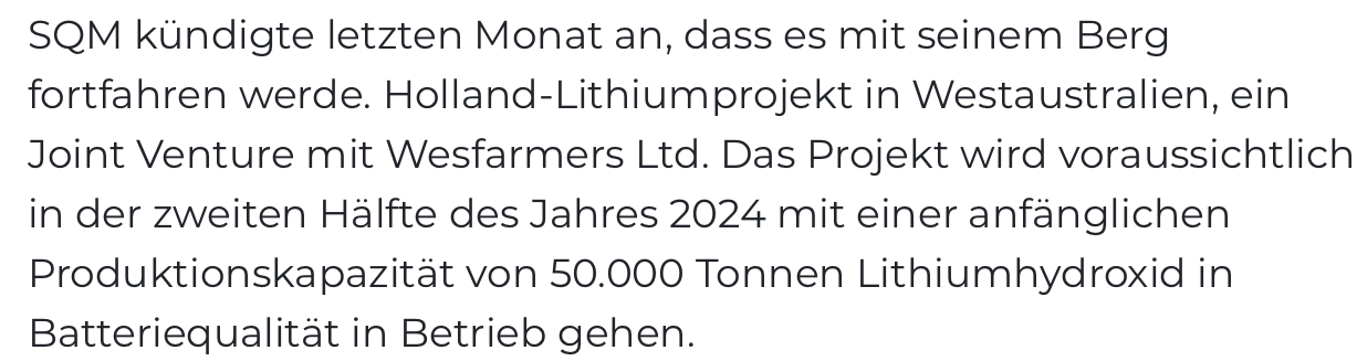 Zu der Willenserklärung von Ganfeng, die Produktion zu steigern mal abgesehen, heist das nicht, das damit der Lithiumbedarf gedeckt wird. Bei der Produktionserhöhung meine ich natürlich auch die anderen Hersteller.