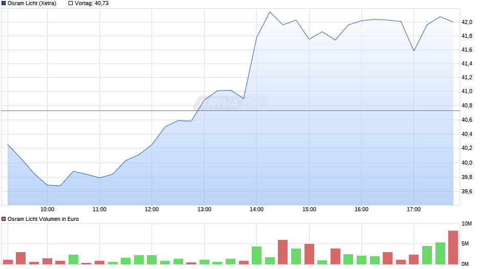 Im Chart heute zu sehen ein Abverkauf heute morgen und dann vom tiefsten Punkt aus ein dynamischer, von guten Umsätzen begleiteter Anstieg auf 40 Euro.
