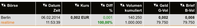 §0,001€ 1.000.000 Stücke 0,002€ 500.000Stücke