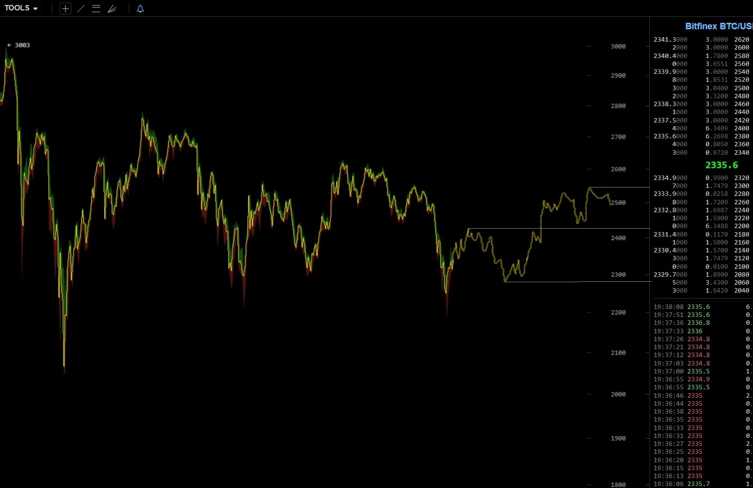 die 1800 hatten wir heute früh, inzwischen sind wir wieder drüber (1840). Das schreckt mich noch nicht. Aber wir sprechen doch von USD und nicht von GBP, also zurück zur richtigen Währung und da haben wir die 2300 sicher und stabil überwunden.