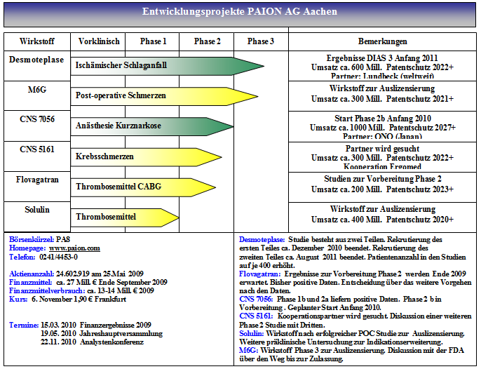Flovagatran Solulin und CNS 5161 lasse ich erst mal unberücksichtigt, da sie bei PAION kurzfristig auch nicht eine so große Rolle spielen.