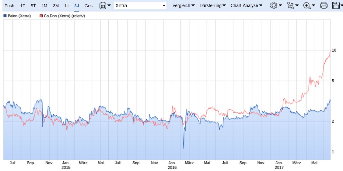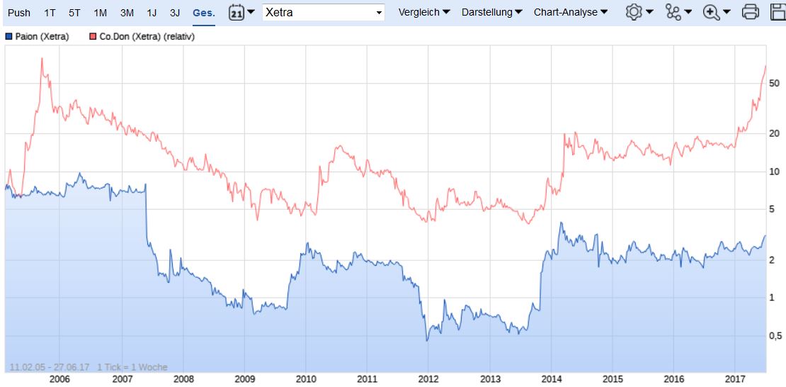 Aber wer sich die vergangenen Jahre 2012-2017 der Chartbilder von co.don und Paion mal genauer ansieht, der erkennt schon große Ähnlichkeiten, wenn es um Anstiege geht.