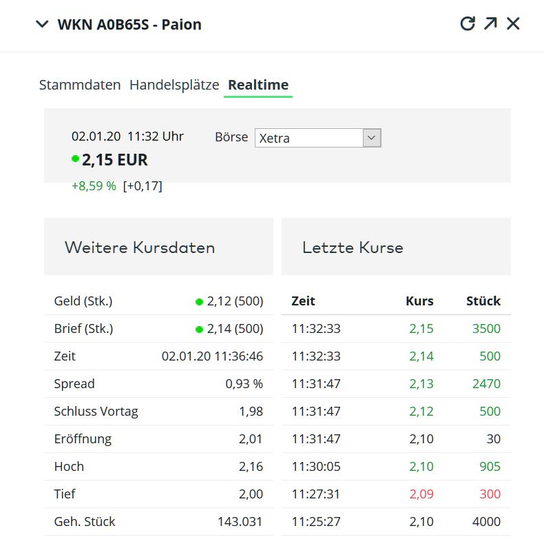 Ansonsten wünsche ich alle Paionsınvestoren, die dabei sind viel Erfolg aber erst viel Gesundheit vorallem für Neues. JAHR 2020