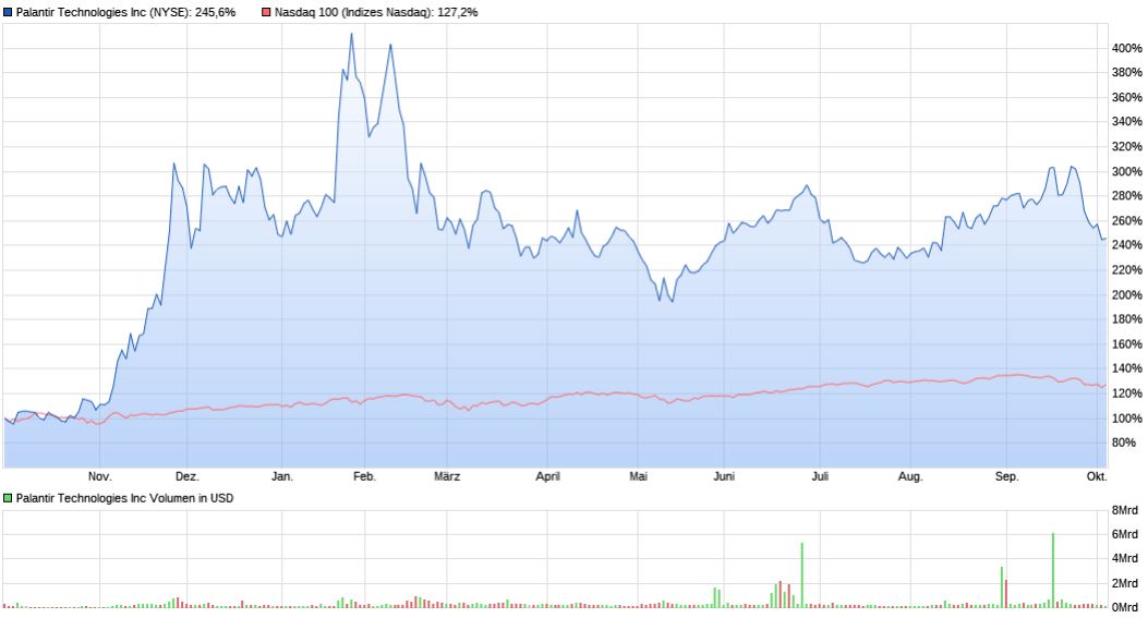In late trading Tuesday, Palantir stock is up 13.4% to $26.32.