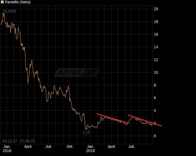 Warum gibt das kleine Haus Sphene Capital GmbH für Pantaflix ein "Sell" und sieht das Unternehmen erst bei 0,30 Euro als fair bewertet an (s. ariva-News)? Pantaflix mit 168 Mitarbeitern würde damit mit knapp 4 Mio. Euro oder lediglich dem 0,17-fachen des Umsatzes 2018 in Höhe von 35 Mio Euro (+25% zum Vj.) bewertet - das wäre dann fast schon Insolvenzniveau - und das erscheint mir zumindest für die nächsten drei Jahre bei dem noch reichlich vorhandenen Cash (13,9 Mio./Vj. 17,1 Mio Euro) und Cashverbrauch doch erstmal ziemlich unwahrscheinlich. Der Verlust 2018 machte 25,3 % des Umsatzes aus (nicht gut), der Cashflow je Aktie ist mit 0,84 Euro aber zumindest positiv gewesen und das Kurs/Cashflow-Verhältnis lag bei sehr guten 1,61. Der Umsatz/ Mitarbeiter 2018 beträgt immerhin 209 Tsd. Euro und die Eigenkapitalquote ist bei noch ziemlich guten 42,4 %.