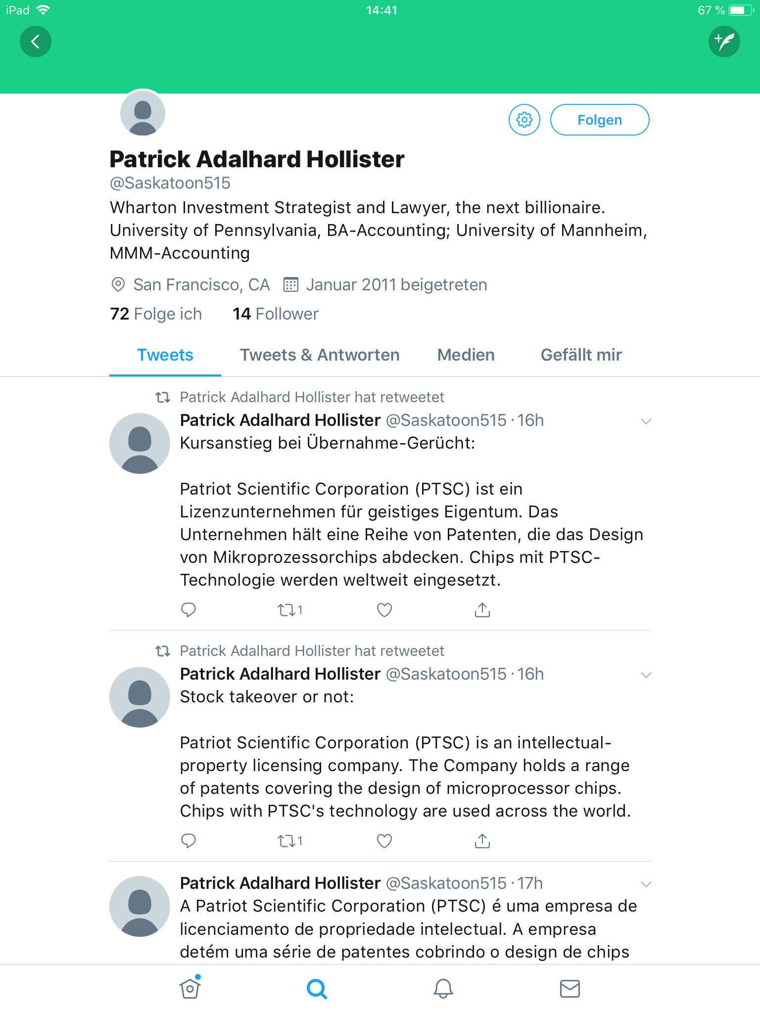 Ich weiss Du bist bei PTSC auch ansehnlich investiert, was machst Du, was kann ich machen, was ist am empfehlenswertesten? Behalten weil PTSC eine Gegenklage machen könnte, verkaufen bestens in den USA etwa). Kotiert ist sie jedenfalls noch, weil es erfolgt ja eine Kursanzeige. Ich habe sie behalten weil ich mir nicht vorstellen konnte, nämlich dass so viele
