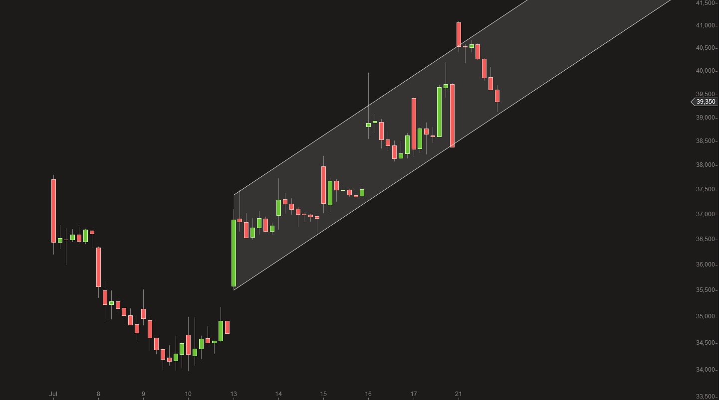 Wenn der Kurs den Boden erreicht hat, steige ich ein.