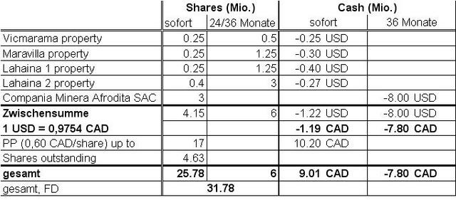 • Dorato has also entered into an agreement with the sole shareholders of Compania Minera Afrodita S.A.C., (“Afrodita”), a company registered in Lima, Peru which owns certain mining concessions in the area of the Mineral Claims. Under the terms of the agreement, Dorato has been granted the option to purchase all of the shares of Afrodita in return for the issuance of 3,000,000 shares and the payment of US $8,000,000 payable over 36 months.