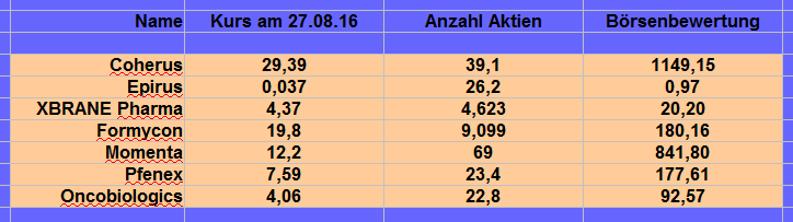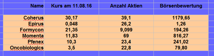 Einbezogen in die Betrachtung habe ich alle Phase 3 Produkte, da nur Coherus bisher ein Produkt am Markt hat.