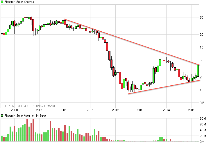 Die News, die den Kursverlauf ausgelöst haben, liegen schon etwas zurück. Mich hatte es schon etwas gewundert, dass der Markt auf die erheblich verbesserten Perspecktiven nicht so richtig reagiert hatte. Hier nochmal der am 31.3. gegebene Ausblick von Phoenix Solar: