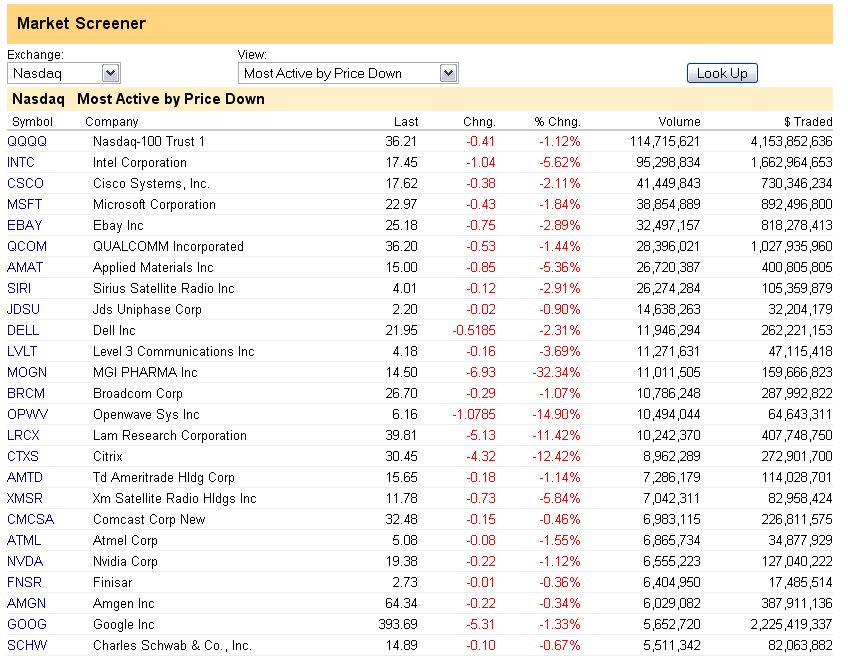 Intel ist aktuell 6 % im Minus. Die Halbleiter wie Applied Materials (- 5,5 %) stinken generell. Cisco, Ebay und Microsoft (die heute Zahlen präsentieren nach Schluss) drücken ebenfalls. "Big Tech" ist die Reihe durch in trouble - außer Apple (+ 12 %).
